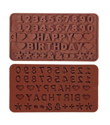 Silicone Mould (Writing, Happy Birthday with Numbers & Symbols) – Makes 49