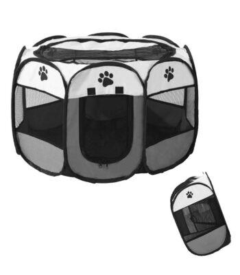 Portable Foldable Play Pet Tent | Outdoor Pop Up Collapsible Playpen For Dogs Cats Animals (Paw Print, Grey) – Large